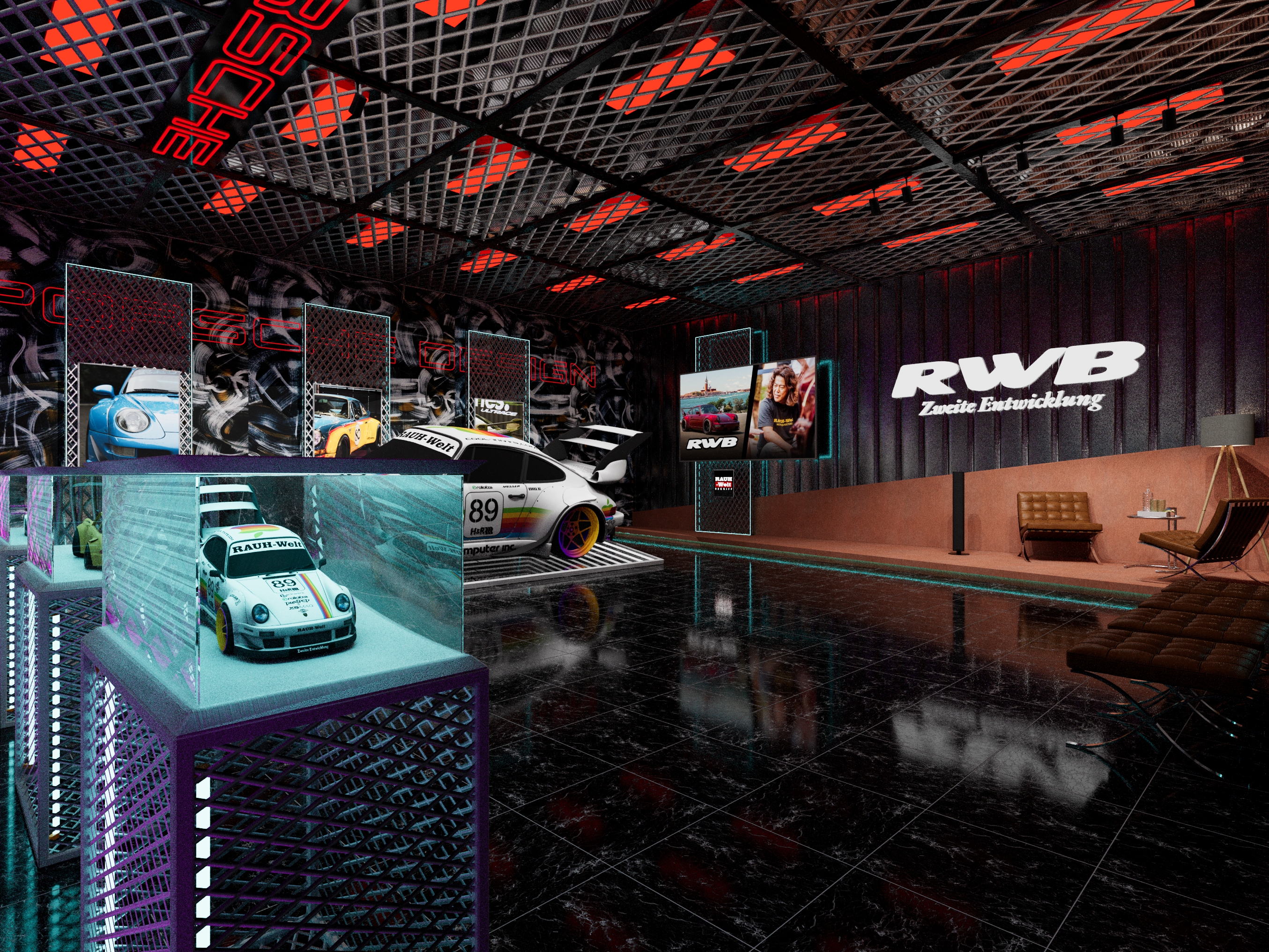 - Create an emotionally charged and visually iconic space that connects car enthusiasts, collectors, and potential clients to the essence of RWB.